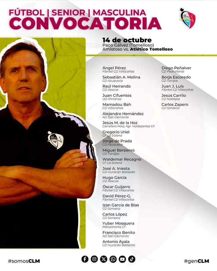 Nuestro jugador Jesús Carrillo ha vuelto a ser convocado por la Selección Senior de Castilla-La Mancha, que disputará un partido amistoso ante el Atlético Tomelloso el próximo martes 14 de octubre.