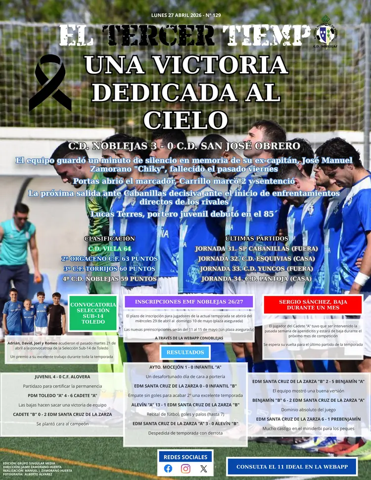 El C.D. Noblejas lamenta profundamente el fallecimiento de José Manuel Zamorano Luengo, canterano, exjugador y capitán de nuestro club.