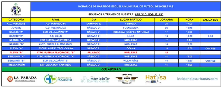 El encuentro correspondiente a la Primera División Cadete que disputaban el C.D. Noblejas y el ADE Talavera tuvo que ser suspendido en el minuto 30 tras la grave lesión sufrida por el jugador talaverano Mario Rincón.