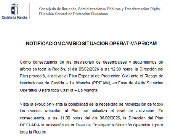 La decisión se adopta tras la activación de la Fase de Emergencia – Situación Operativa 1 para toda la región, motivada por las previsiones meteorológicas y la evolución de los caudales y desembalses, con el objetivo de garantizar la seguridad de los participantes, familias y personal implicado.