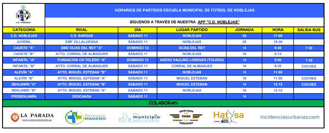 Horarios Partidos Fin de Semana
