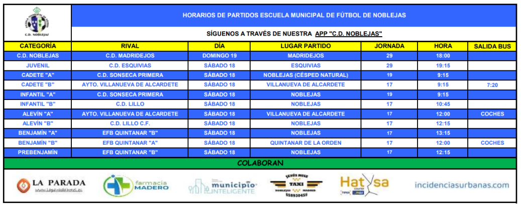 Horarios Partidos Fin de Semana