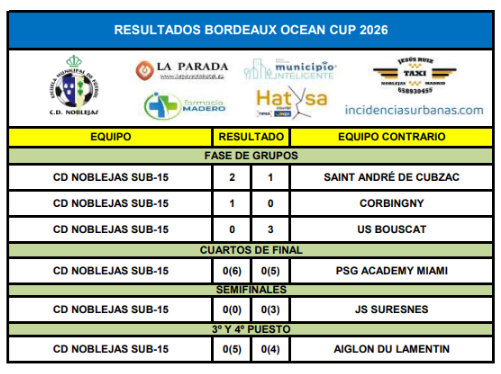Resultados Partidos Bordeaux Ocean Cup 2026